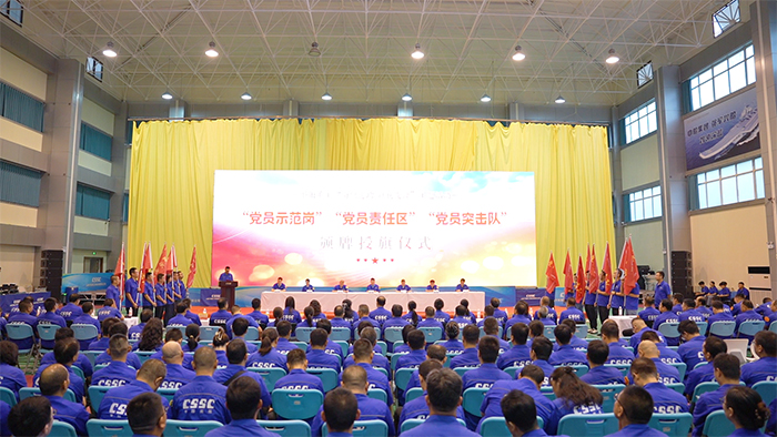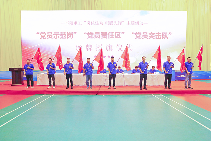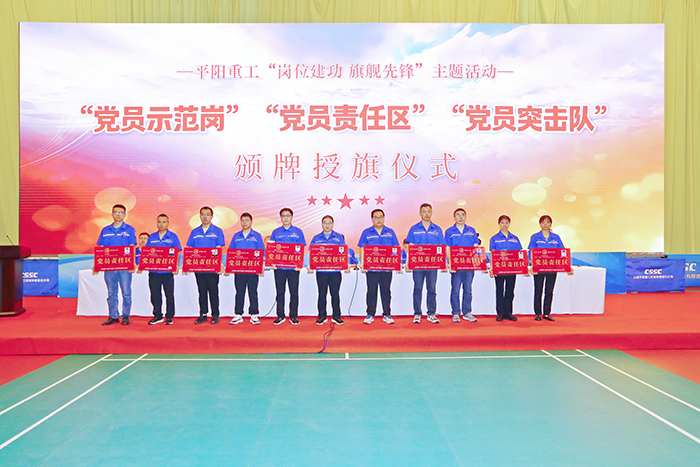 為(wei)全(quan)面貫(guan)徹落(luo)實(shi)集(ji)團公司(si)2025年“1-1-7-8”總體部署,激發(fa)全(quan)體黨(dang)(dang)員干事創業的熱情與(yu)活力,推動公司(si)發(fa)展再上新臺階。9月3日(ri),中船集(ji)團平陽(yang)重(zhong)工(gong)在職工(gong)文體活動中心舉行了(le)“黨(dang)(dang)員示范崗”“黨(dang)(dang)員責(ze)任區”“黨(dang)(dang)員先鋒隊”頒牌(pai)授旗儀式。